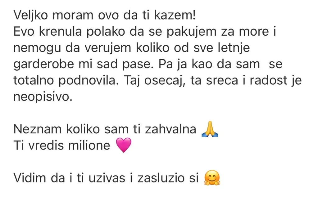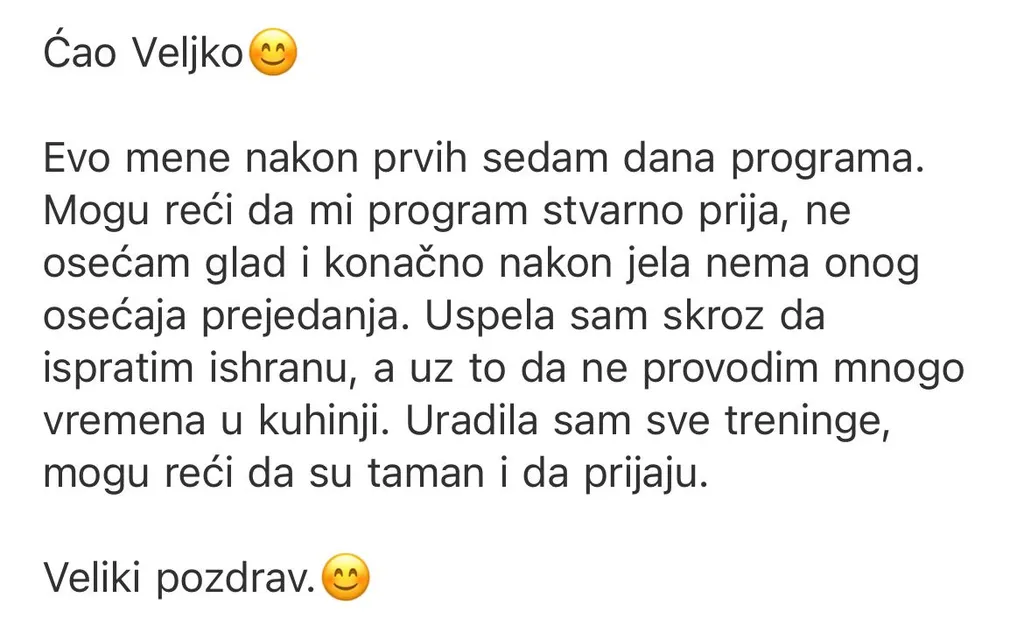 Napiši mi poruku ,,DA” ako si odlučna da krenemo, jer ti odgovara ono što program nudi.